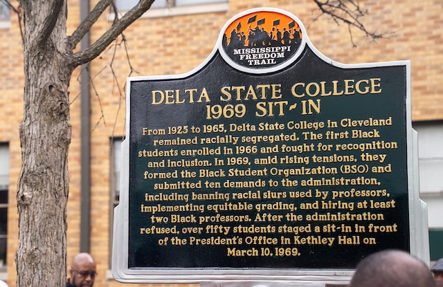 CLEVELAND, Miss. — A Mississippi Freedom Trail marker has been unveiled at Delta State University to commemorate the 1969 student sit-in that helped advance equality for Black students on campus.